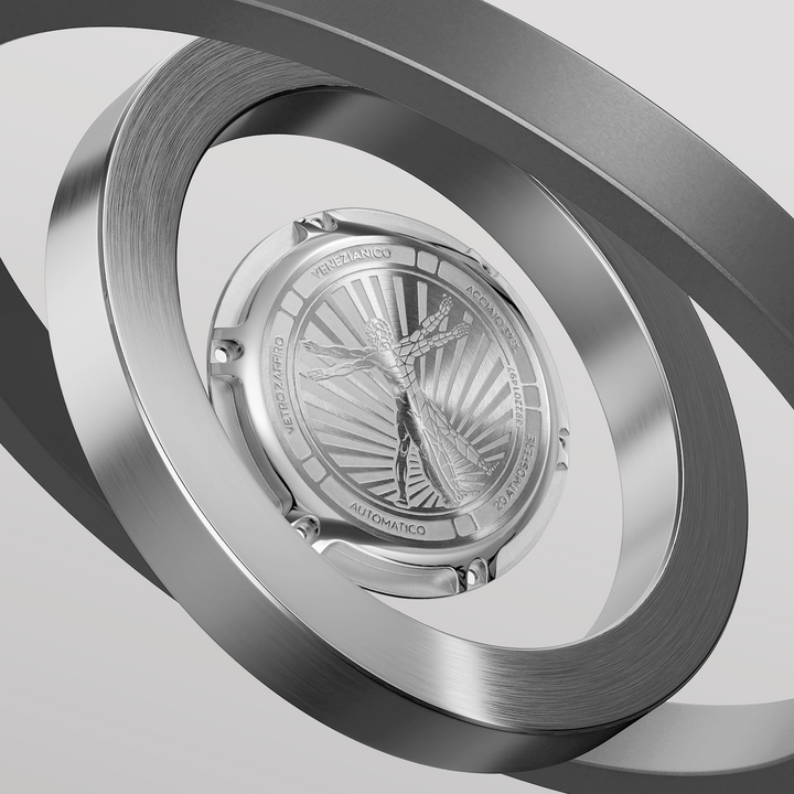 Ultraleggero is the most innovative watch in the Nereide series. It draws inspiration from the Vitruvian Man, symbolizing the Renaissance and the close connection between art and science. The peculiar shape of the skeletonized dial fits perfectly with the body of the movement, through an original patented system that guarantees greater lightness and less bulk.